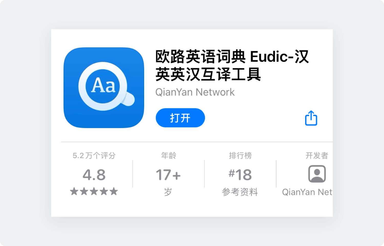 十多年过去,欧路词典已支持 iOS、Android、Windows、 macOS、Linux 等多个平台,不仅屡次获得多个国家地区的苹果商店首页推荐,并且帮助千万用户查词、翻译、单词背诵,获得数万条平均 4.8 分的真实好评。