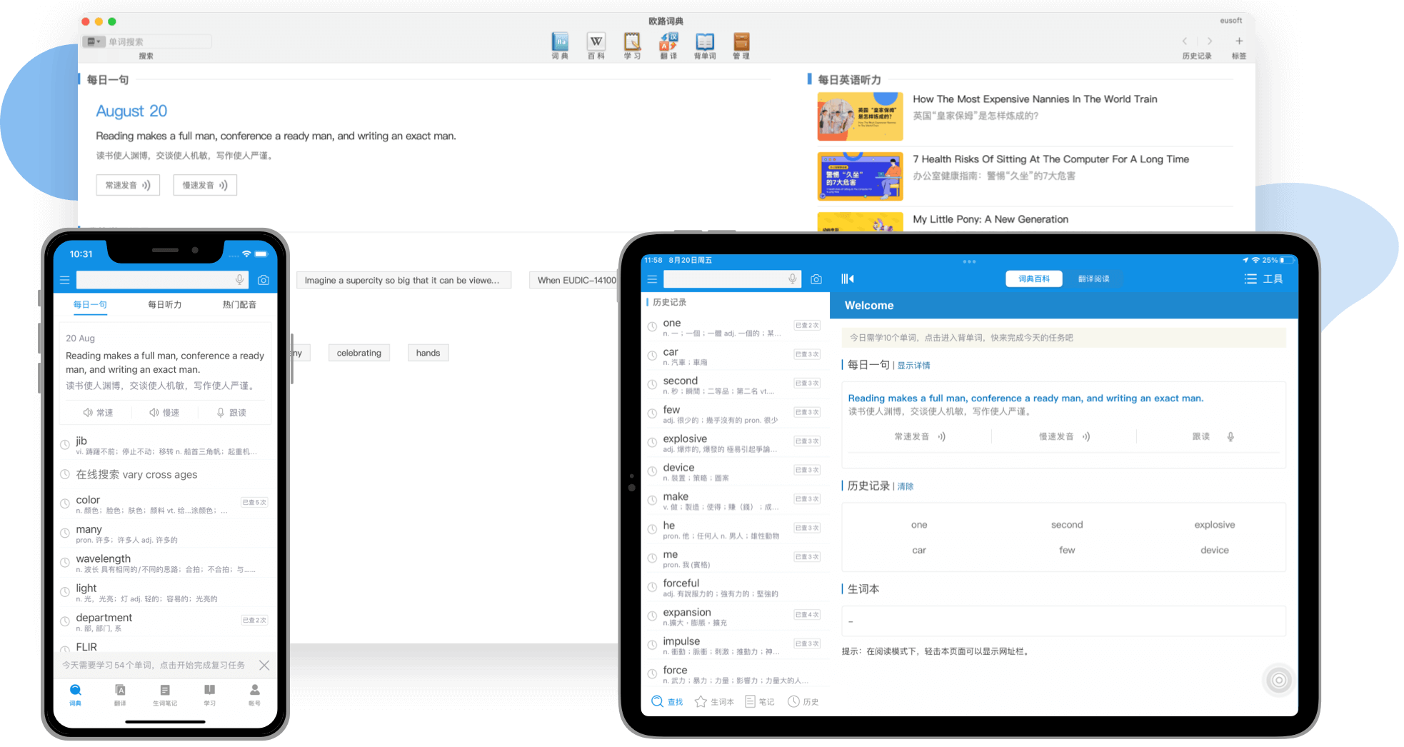 提供电脑端词库编辑器,支持自制扩充词库;朗文、牛津、Collins,权威词库尽情添加;