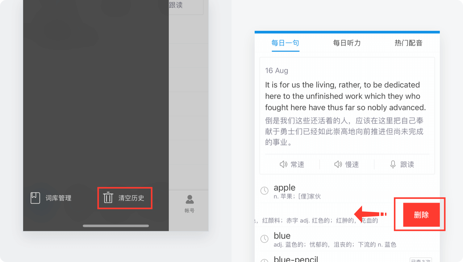 说明:调用该 URL 后,欧路词典会查询 task 这个单词,同时将“返回”键定义为返回到“每日英语听力”软件中。